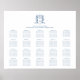 Vit med mörk blått text och löv vapensköld teckning art mongram sittplatsplan för bord. Redigera bord-sjökortet i bröllop med egna sittplatser och gästernas namn. Denna plan gäller upp till 20 bord. Ursprunglig utformning och vapensköld med hjärta krona, med löv och bär hand teckning av Sarah Trett för www.mylittleedenweddings.com endast på Zazzle.