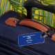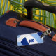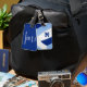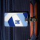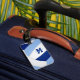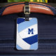 Den här volleyball-taggen för temat bagage är lämplig för en flicka eller pojke och har en realistisk bild av en abstrakt överdimensionerad volleyboll som har lätta och mörk blått och vita paneler - personanpassa med spelare namn och monogram på framsidan, adress och mobila nummer på baksidan - av katz_d_zynes