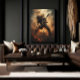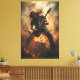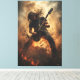 A long-haired guitarist surrenders to the music amidst dust and sparks. The dramatic movement and heat of the fire create a visceral scene of rock power, perfect for those seeking intense energy art.