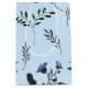Fintvätt med handmålad vattenfärg, upprepning av blåklockor och fåglar på bleken blå