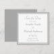 Det här sparar datumkortet på ett elegant sätt med en enkel och ren blek grått färg-tema i åtanke, med en modern typografi. Anpassa med din information eller anpassa den genom att klicka på knappen "Anpassa" om du vill ändra något av inslagen. Kortets baksida är en matchande skugga av blek grått.
