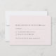 Det här svarskortet för eleganten har en Ljus rosa solid bakgrund i Bleken som skapar en mjuk och romantisk estetik. Linjen struktur tillför en smula sofistikering och glamor till designen, skapar perfekten för ett bröllop firande. Brons svarskort visas på ett vackert sätt mot den vanliga bakgrunden och skapar en häpnadsväckande stabil bakgrund som säkert kommer att imponera på gästerna