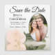 De här magneterna sparar datumkortsområdet på ett underbart sätt att låta dina vänner och familj få veta om ditt kommande bröllop. De har en vacker utformning som är både romantisk och elegant med en enda långdragen blek eller färgad av ljusa orangar som reflekterar i en bassäng av vatten med vinkara och krusande föremål och ditt foto i en ovalformad ro på en klassisk vit bakgrund. Rubriken läser Spara datum med utrymme för namnen, datum och plats.