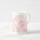 En söt blommigt med china mugg med i blek rosa med vattenfärgsdesign i blommigt.