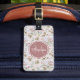 En elegant beige-färgad-bagagetagg med ett vackert blommönster av blek rosa och kräm ro. Anpassa genom att lägga till ditt namn och monogram till det rundade oktagonmärket ro. Detta är en del av beige Cream-Blommigten Ash Ro Monogram Collection.
