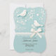 Blek Teal with Romantic Snöre and Birds Wedding bjudation. Den här fantastiska bröllopsinbjudan har en delikat och romantisk design, perfekt för ett par djupt i kärlek. Inställningen mot en serene, blek teal bakgrund visar ett par charmerande vita fåglar som genomborras mitt i grenar, med blommar. Fåglarna, symboliserar kärlek och enighet och tillfogar inbjudan en viskfull beröring. En underbar vit snöre-trim lägger till mitten på kortet och lägger till en inslag av vintagens elegans och sofistikering. Över snöre förstärker en vacker vit buk ytterligare det känsliga estetiska området.