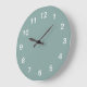 Blek Turcos minimalistisk akrylväggsklocka, en underbar modern väggklocka med lättlästa siffror på en vanlig blek turkos färg bakgrund.