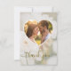 Uttryck din tacksamhet med elegans med detta romantiska tackkort med ett drömlikt foto på en vit ros av Destei, bleknat med en vit överlagring för en tidlös look. Framsidan har en hjärtformad fotoram där du kan lägga till ett anpassat parfoto, tillsammans med ”tack” i graciös skrivstil. Baksidan har en dämpad, sagegrön bakgrundsfärg med en subtil hjärtsilhuett, utrymme för ditt tackmeddelande och personlig avslutning med namn. Ett hjärtligt och stilrent sätt att tacka dina gäster.
