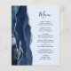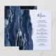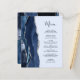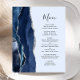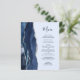 Den moderna bröllop-menyn på den lämnat kant i eleganten har en marin blå vattenfärg som ruttnar gräns med faux silver glitter. I anpassadet kombineras handskriftsskript och kapslad typsnitt i grått i kol på en ljusblå pastellblå bakgrund. Den omvända sidan har en matchande marin blå och silver-agate-design.