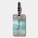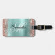 Skapa din egen faux sparkly ro guld glitter och pastel blek turkos teal faux borsted metall foil digital Art bag märkre. Du kan öka eller minska det storleka teckensnittet på baksidan efter behov för att anpassa kontaktinformationen. All grafik i glitter och folie i den här designen skrivs ut som ett digitalt foto. Ett fint brudgummitack till er gåva till era brudens sida-medlemmar på ert destinationsbröllop.