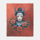 Blekens skönhets hemlighet, den vackra japanska flickan. Hennes hår är fäst i en elegant bun och ger henne ett fint utseende. En ljusröd prick är utsuddad på hennes framhuvud och skapar en brännpunkt. Hennes ansikte är hårt utpekat med blått och rött mönster, där hon betonar sin individualitet och kanske också den kulturella symboliken. Hon bär en blå och vit snyggt som harmoniskt matchar färgen på hennes prydnadsföremål.