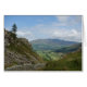 Kort med fotoet av den Blencathra avverkningen från kicken Rigg med den torra stenväggen och granträd i förgrund.