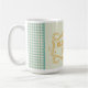 Snyggt kaffe mugg med en aning sydcharm, med guld "välsigna ditt hjärta" i finare ram och vintage blå gingham-bakgrund.