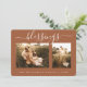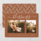 Ett enkelt och modernt julfotokort med textvälsignelser i handskrivet skript med elegant på terracotta-bakgrund. På baksidan av kortet finns en rustik ritad sprit mönster. Lägg bara till ditt namn och två favoritfoton från familjen till det här julkortet och skicka det till din familj och dina vänner! Enbart designad för dig av Lycklig Dolphin Studio.