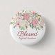 This elegant button features pink and cream hand-painted florals with the uplifting message “blessed beyond measure.” Perfect for women’s ministry events, luncheons, and church celebrations. If you need help with coordinating items message Suzanne via Zazzle chat.