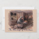 Vintage vycard-bild av Nativitetsscenen med det välsignade Mor, baby Jesus, kor, manger och de tre vises Manar utanför fönstret. Stjärnan lyser i avstånd. Omtryckt som denna vackra julinbjudan att fira julens sanna innebörd.