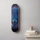 Unleash the wild on the streets with this captivating skateboard deck design featuring a ferocious, snarling wolf head. Rendered in a stunning dark fantasy illustration style, every detail of its textured fur is brought to life, culminating in piercing, electric blue glowing eyes that command attention. Set against a mystical backdrop of a cosmic nebula swirling with deep purples and blues, this design evokes raw power and otherworldly energy. Perfect for riders who embrace their inner beast and want a board that truly stands out from the pack. Ride with the spirit of the wolf.