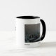 Ett kyligt aftonfoto av den första snön av ska 2006 påminner dig hur bran det är att vara inomhus med en mugg av varm choklad. Ord "som blir varm" på andra sidan av muggen. Fotoet och muggen planlägger vid Daren Scot Wilson.