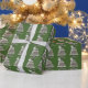 Lille Boy står på ett bord med en hammare i handen när han justerar en stjärna på toppen av det Julgran han har byggt. På varje plank står det: "Var den gåva du har fått och tro på det otroliga som är du!" Grund-segmentet säger: "God jul!" ©Little Boy, Big Dreams, LLC och David A. Carrizales och teckningar av © Christie Black of Creations from the Heart.