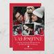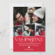 Modern valentines day-kort med en röd bakgrund som kan ändras till vilken färg som helst, en 4-fotokollage av dig och din partner, ord "vara min valentin", ett sött citat, ett kärlek-hjärta och vem som kommer från det.