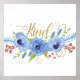Poster har vattenfärgseffekt på blommor, löv, kärnor och bär, och citatet "Var ödmjuk och snälla". Ord, "Kind", har en glitter-effekt.