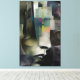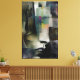 Surreala, geometriska abstrakter i biet, blandningsformer och en kvinna i ansikte.