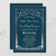 Bling Underbar Gatsby Guld Blue Art Deco Bröllop Inbjudningar