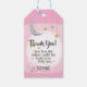 Lägg till en magisk finish på dina baby shower-favoriter med denna presenttagg för Twinkle Twinkle Little Star-tema! Designad med en mjuk rosa vattenfärg bakgrund, handritad måne och skimrande stjärnor, är denna himmelska tagg perfekt för en babyflicka-fest. Fäst den på presentpåsar, godsaker eller festfavoriter för ett sött och sammanhängande utseende som matchar hela shower-temat.