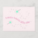 NyParkLane - Söt magisk änglaminnes-tema vykort för att gratulera eller tillkännage en nybebis flicka, i rosablush, med en sagoprinsessas magiska trollspön i turkosgrön, och en ramsa 'Twinkle twinkle little star' i varmt rosa.