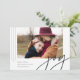 Ett modernt kort med elegant och helgdag som innehåller ett vågrät- eller landskapsinriktat foto som är accentuerat med tunt lodrät rand. "Joy" visas nedanför i avslappnad-handskrivna skripttypografi. Anpassa med din anpassningsbar Julhälsningar, namn och året. En chic och ett modernt, minimalistiskt val för dina julkort 2021.