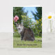 blinka tabby katt i sommargården för humoristisk födelsedag