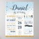 En perfekt detalj till din lilla pojkes första födelsedagsfest! Denna vackra Twinkle Twinkle Little Star 1:a födelsedagsmilstenar Födelseinfoaffisch är perfekt att rama in och placera på en efterrätstavla/tårtbord och använda som dekoration i barnkammaren efteråt. Bra som fotopropp för mycket speciella och minnesvärda födelsedagsbilder! Det gör också en underbar unik present!