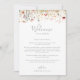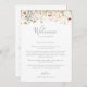 Brev som är välkommet av den vackra boho-bushen, bröllop, är en perfekt för ett bröllop som är rikt. Utformningen har rosa, lila, , gult, dammblått, rött, burgundsblommor i en vild som är sammansatt i ett sömlöst och snyggt blommönster och som framkallar naturskönhet. Anpassa fronten med ett välkomstmeddelande till dina gäster och till namn. Anpassa baksidan med schemat för händelser och annan användbar information.