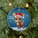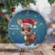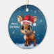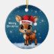 Blitzen! Cute animal reindeer character, baby deer with antlers and personalizable Santa hat with festive blue snowy backdrop. Unique winter wildlife graphic with a light snow. Round ceramic ornament, with customizable Merry Christmas written in white. for decorating your holiday tree or as a thoughtful gift, this whimsical woodland doe decor makes a cherished keepsake for years to come. Customize by changing the text, the font, the font color, or remove the text. You can even transfer this cartoon fawn illustration onto other products. Enjoy this design your way! 🎄🩌 Dimensions: Diameter: 2.87". Thickness: 0.156". Weight: 1.4 oz. Made of white porcelain. Full-color, full-bleed printing. Printing on both sides. Thread does not come attached/tied.