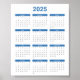 Bliue and White 2025 Year at a Glance Calendar Poster