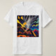 A.I. skapat tolkning av en pulserande och abstrakt-kubistisk sammansättning visar blixtströmmar i ett mörkt kvällsljus himmel som förekommer ovanför ett landskap av geometriska formade bergstoppar med vassa vinklar och varierat färg.