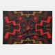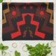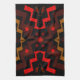 Den här lysande färgaden amerikanska kökshandduken MoJo har en primitiv abstrakt mönster av blixten och sol i jordtoner av orange, rött, svart och brun.