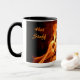 Den här lysande brinnande hetten är perfekt för roligten mugg. upp lite värme på en kylig dag i detta vackra flamande mugg med orangen som brinner mot mörkens svarta bakgrund. Det är en roligt och en funktionell utformning. Bilden är originalbrandfotografi av JLW_PHOTOGRAPHY.
