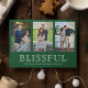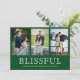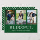 Skicka en elegant julkort till din familj och dina vänner med dina favoritfoton. Vänd över kortet för att visa en grönt för elegant och vit rand mönster på baksidan av kortet.