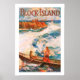 Vintage resor poster för nya Englands Blockö, en sommaranläggning utanför kusten i Connecticut.