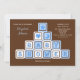 Den här söta babyduschinbjudan är designad med blå och vit baby-block - vissa med design inuti och andra stavar ord "BABY SHOWER". Blocken finns med på en chokladbrun bakgrund, liksom de inbjudningsdetaljer som visas i vitt och mamma som är namn, som visas i blått. Copyright henishouseofpaper