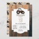 En brun traktor och en beige traktor lastbil mönster med en räck och hink. Perfekt för alla som kärlek, lastbilar, tunga maskiner, jordbruk eller bara kärlek leker med leksak lastbilar. Idealiska födelsedagsinbjudningar, matchande party-dekor som är tillgängliga i den här samlingen. Anpassa texten och gör den till en egen.