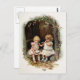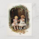 Snygg Victoriansk utskrift av två flickor som blåser bubblor i skogen. Barnen är sitta i skogen med löv vid fötterna och ro om huvudet. Detta illustrerades av Harriett M. Bennett 1891.