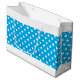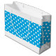 Den här chicen har sportisk design som visar vit polka dots mot himlar blå bakgrund. Den moderna sammansättningen av det vita kant-rand som ligger på topp- och grund.