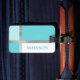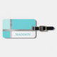 Trendig Chic Monogrammed Personlig Turcos Blue Silver Foil Rand Metallic Modern Geometric Färg Block Luggage Tags. Girly Glam Bling Luggage Tag Design med turkos Blue Färg Block Mönster. Perfekt Classy Elegant Travel Märkre e för kvinnor.