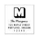 Modern Självbläckande Gummistämpel för Returadress med modernt typsnitt för din monogram, stilfullt skrivsätt för ditt namn och fetstil för adressen. Nu behöver du aldrig mer skriva din adress när du skickar brev.