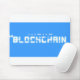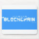 Ett stort textmeddelande på ett digitalt ljusblått skärm med en kraftig förvrängningsglitch fx: Blockchain.