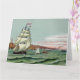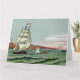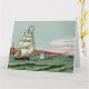 Den här antika bilden visar en frakt för elegant vid fullt som lämnar hamnen. Den färgstarka himlar i blått och orange är en lugnande komplimang till den blå grönten vatten. Det är redot för din anpassning.