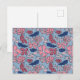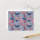 Blockutskrift av rosa och blått Hand plockade-Blom Vykort