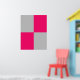 En enkel geometrisk utformning av shock rosa- och grått färg-block.